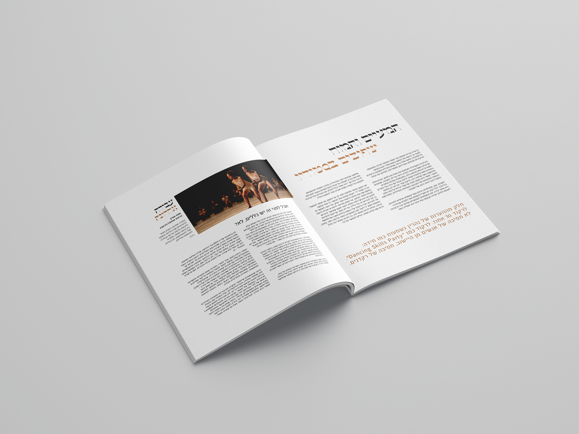 Mammoth is a printed booklet dedicated to the Batsheva Dance Company, designed to capture the spirit and presence of the dance group through editorial design. The booklet combines interviews, a curated performance schedule, and a selection of imagery showcasing the dancers and their work. Alongside the content, the project focuses on a cohesive visual language, with layout, typography, and cover design developed across all pages to create an editorial piece that balances information and atmosphere, translating the movement and identity of the company into a printed format.